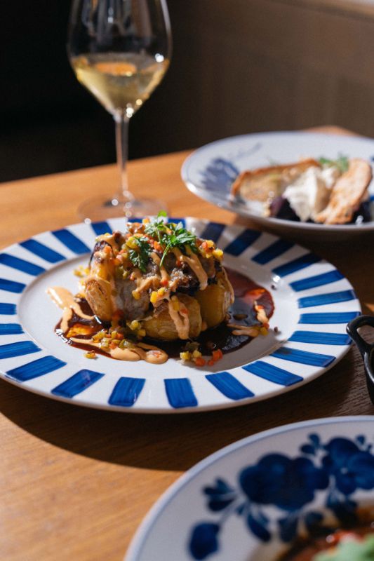 Nejvýraznějším chodem nabídky je trhaný hovězí brisket na maxi bramboře. Maso se 16 hodin připravuje při nízké teplotě, poté se trhá, míchá s výpekem a částí omáčky, a nakonec se ještě zauzuje na bukových štěpkách. Podkladem je velká pečená brambora, lehce rozmáčknutá a dozlatova opečená.